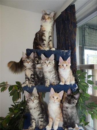 Op 29 januari 2013 zijn Coonflakes Baume & Mercier Catwalk Lady en Ch. TICA Ch./Fifé kampioen Ziggy Marley Silvi-Cola *PL de trotse ouders geworden van 7 gezonde kittens.